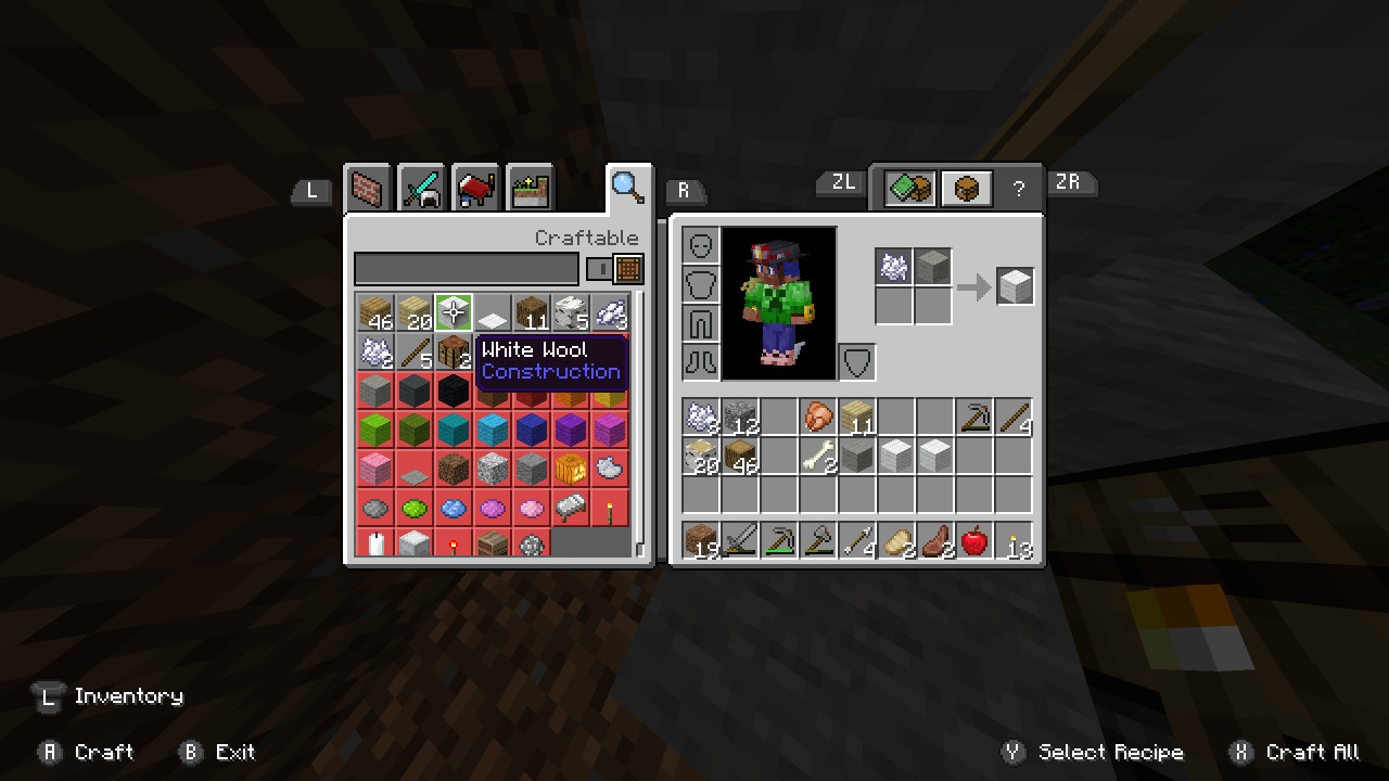 糸を4つクラフトすると羊毛ができる