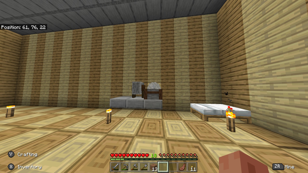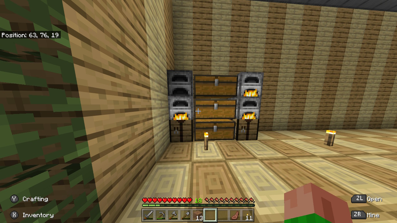 左はチェストとかまど、作業台があるよ